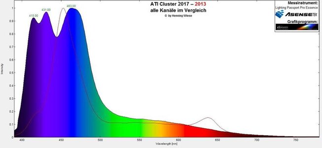 Kann ich meine ATI Sirius X2 auch für Süßwasser nutzen? Die Leuchte hat 145Watt und das Spektrum der LEDs habe ich mal angehängt. Meine Leuchte hat das Spektrum was in der Grafik als dünner Strich dargestellt ist - also mit einem kleinen Peek im roten Bereich.