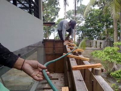 Gleichzeitig habe ich mich mit Dow-Corning in Verbindung gesetzt, die gibts naemlich auf hier auf den Philippinen. Die Frage war wie das Glas gegen den Beton abzudichten ist. Dow hat mir empfohlen Ihre Primer OS und Structural Glazing Sealant 695 zu nehmen...damit haetten sie auch das grosse Singapur-Aquarium gebaut. Sie haben mir auch gute Tips zur verarbeitung gegeben.
