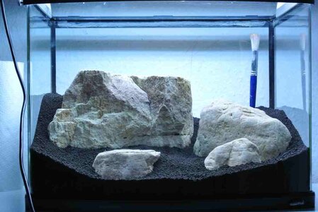 Diese wurde in den ertsen 10 Tagen mit 3x24w T5 beleuchtet, was sich aber durch ein vermehrten Algenwuchs,