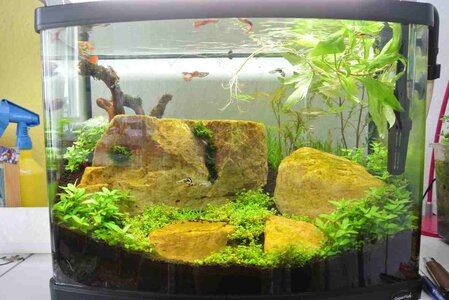 Am Anfang habe ich vorsichtig oder kaum gedüngt, worauf sich sofort Algen breit machen wollten . Dank der Hilfe hier im Forum besonderen Dank an Eddy :thumbs: .Habe darauf gleich von anfang an die volle Dosis verabreicht und siehe da die Algen sind so gut wie völlig verschwunden. Die Posthornschnecken haben/machen sich über Kieselalgen und leichte grüne Belege her.