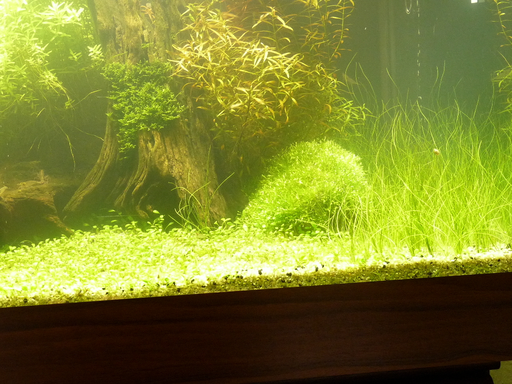 An Besatzung sind nur meine Amanogarnelen, etwa 26 Stück und 1 Schockogurami drin, der ist eine Dauerleihgabe von meinem Cousin weil er sein Aquarium aufgelöst