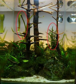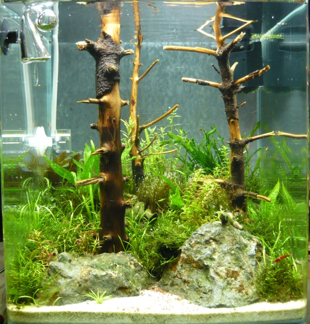 Ich bin zwar noch nciht lange beim Scapen, aber ich finde dass deine "Bäume" ihren Effekt verlieren indem sie oben einfach "tot" sind und aus dem wasser rausragen....