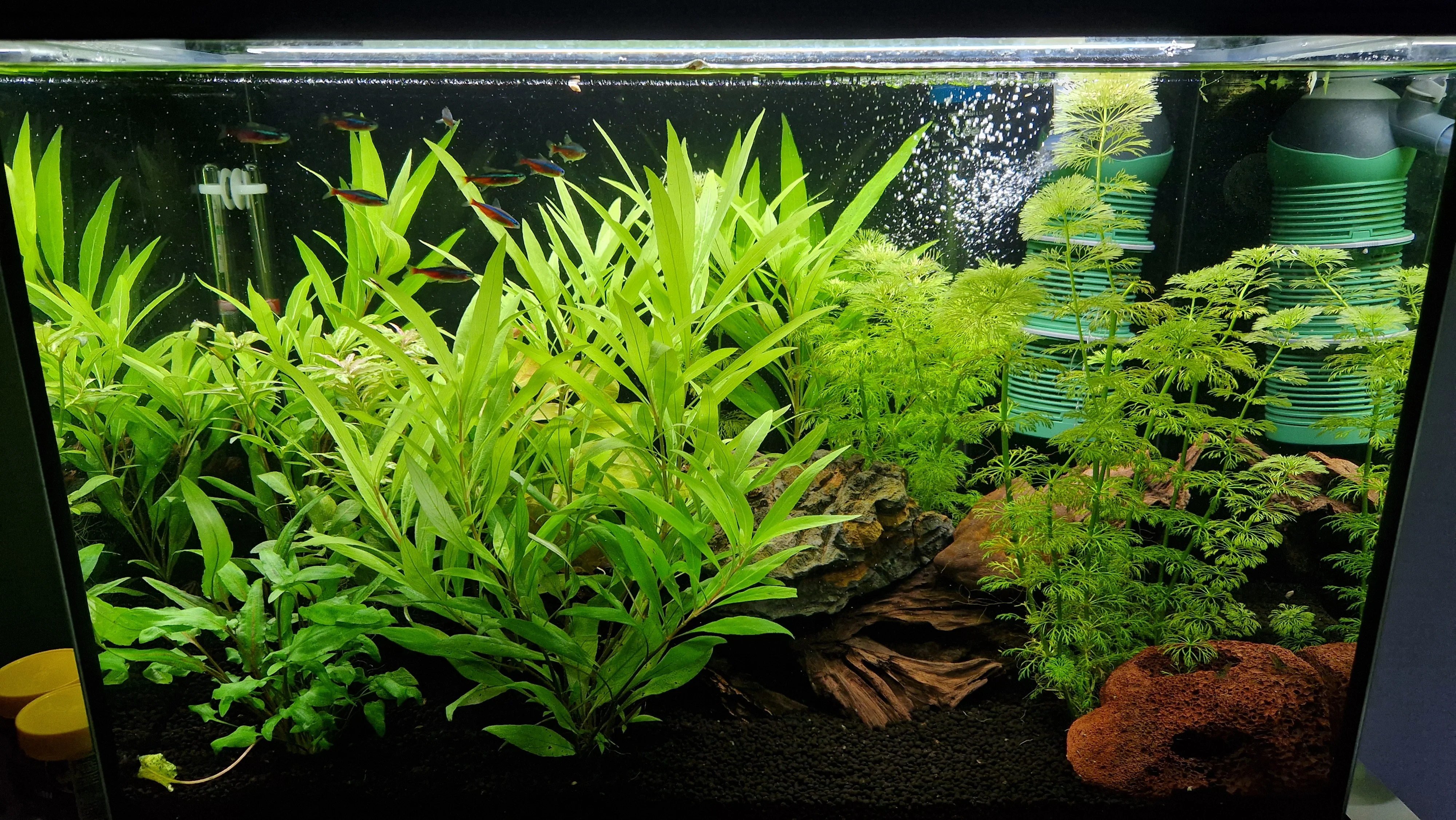 Edit 1 - Aktueller Besatz: 9 rote Neons von damalig 17, 4 Ohrgitterharnischwelsen von damalig 5, 3 Rennschnecken und 5 Amanogarnelen (wir haben auch viele kleine Blasenschnecken)