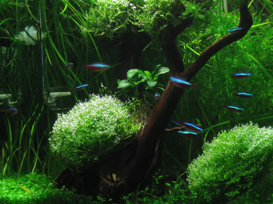 habe eben ein paar Bilder von meinem Dschungel-Becken gemacht. Es läuft übrigens alles perfekt, keinerlei Algenprobleme - auch nicht in der Einfahrphase. Bin mit dem Estimative-Index-Dünger und dem Micro-Dünger von AR sehr zufrieden.