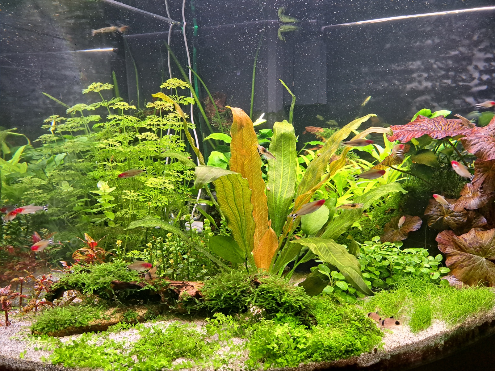 Hei, ja wenn man alles so antreibt mit haufig Licht, Dünger und Co2, braucht man sich nicht wundern ;grins: Die Geister, die ich rief...Klar ist es schön, wenn alles üppig wächst, aber wenn es den Rahmen sprengt, ist halt doof...