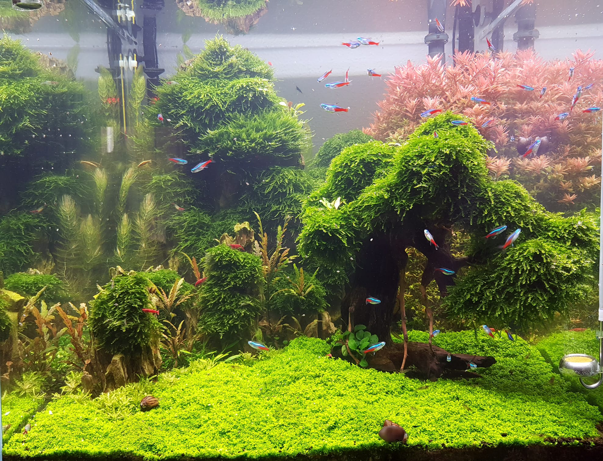 Ich habe wenig Erfahrung mit Moos. So habe ich auch zum ersten mal getestet Moos auf zu kleben. Gefällt mir leider gar nicht. Der Kleber härtet im Wasser sofort wie Sekundenkleber aus und sieht unschön weiß aus.