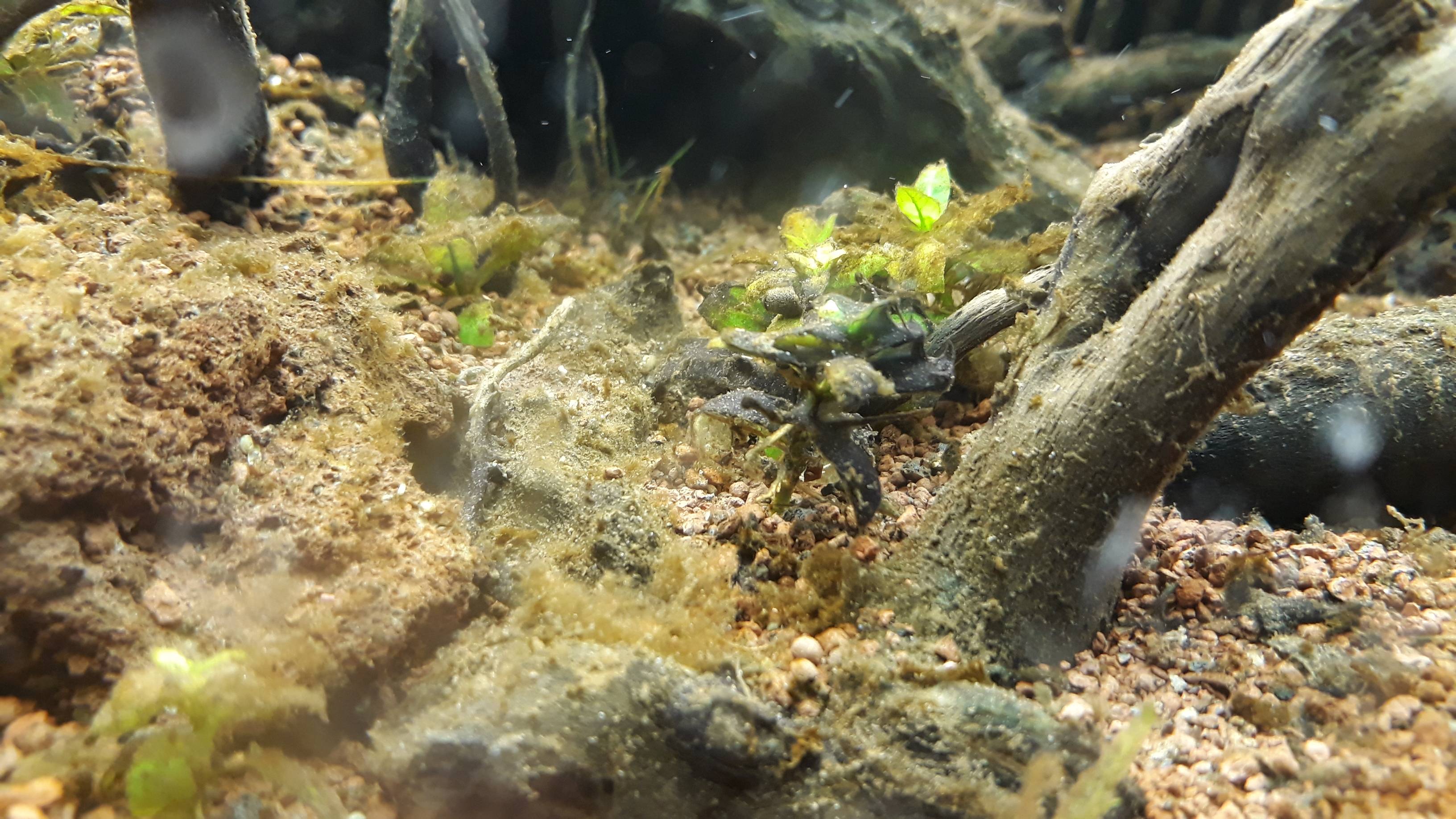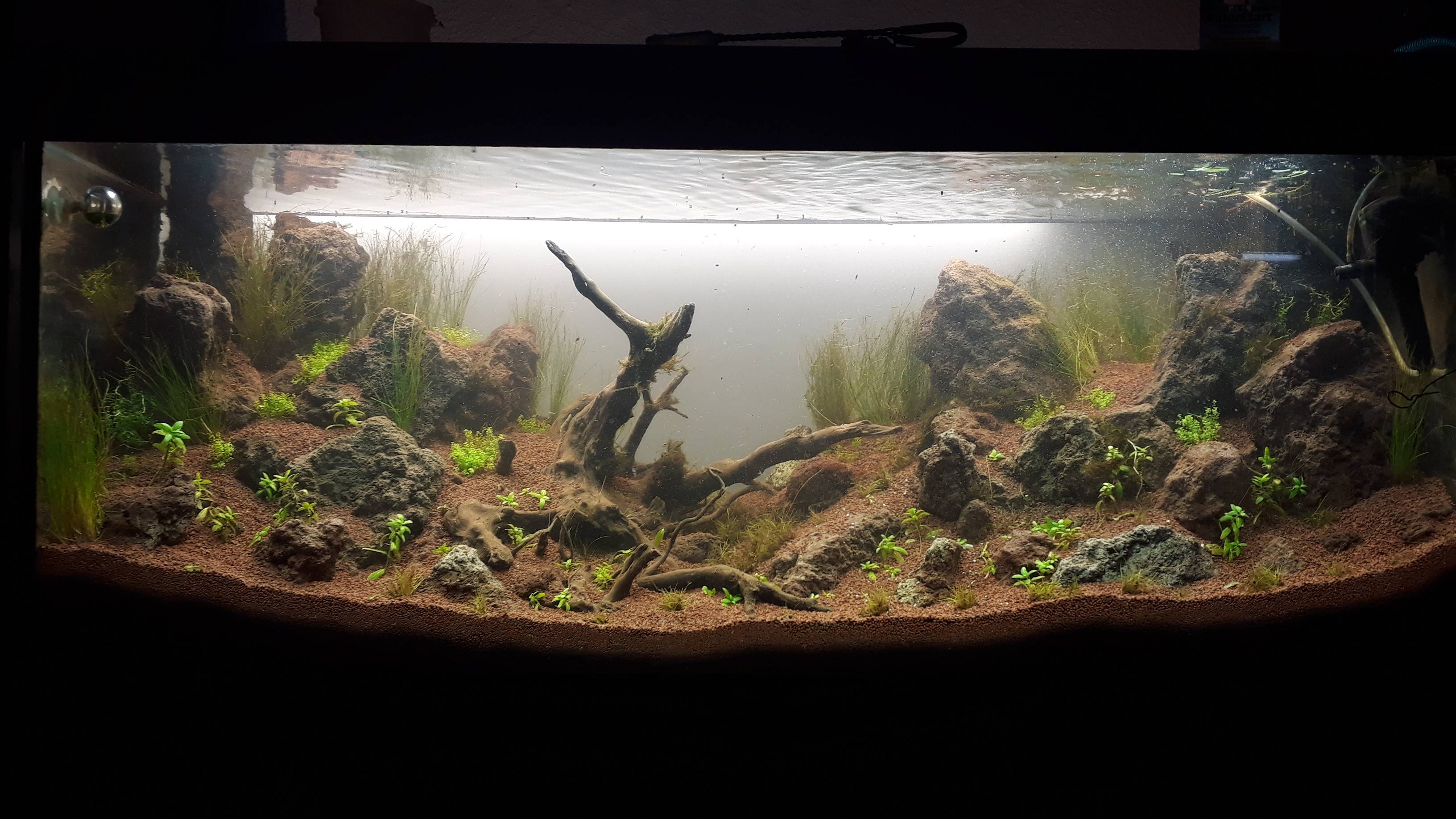 Der aktuelle Zustand ist absolut desaströs, ich kann mir kaum vorstellen, dass der Kampf zu gewinnen ist und die Pflanzen sich wieder erholen. Deshalb ist mein aktueller Gedanke, dass ich die Fische erstmal umsiedel und dann das Becken abdunkel bis alle Cyanos hinüber sind. Die Idee ist, dass ich das Hardscape behalten kann und dann eben neu bepflanze.