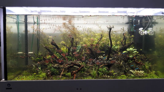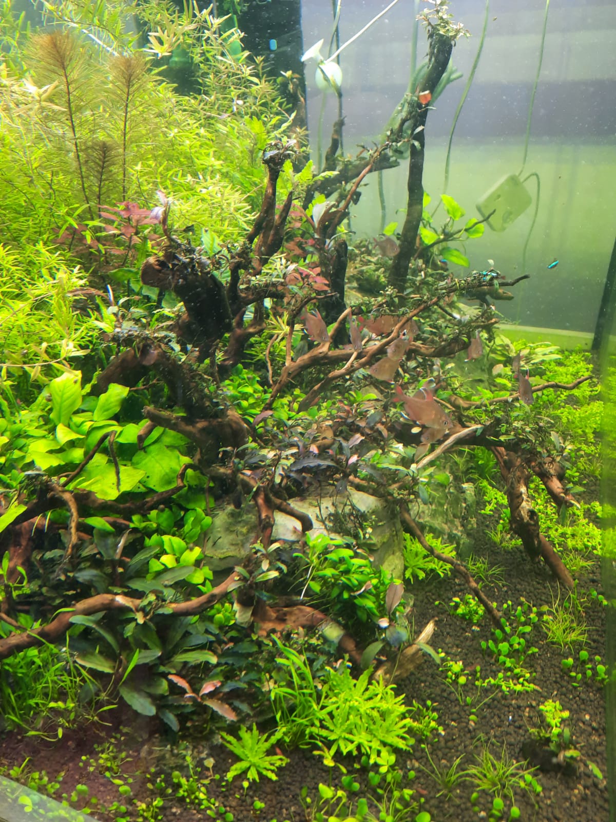 anbei meine neue Aquariengestalltung. Ich wollte meine Bucephalandra gut positionieren und eine Mischung mit Steinen und Wurzeln schaffen.