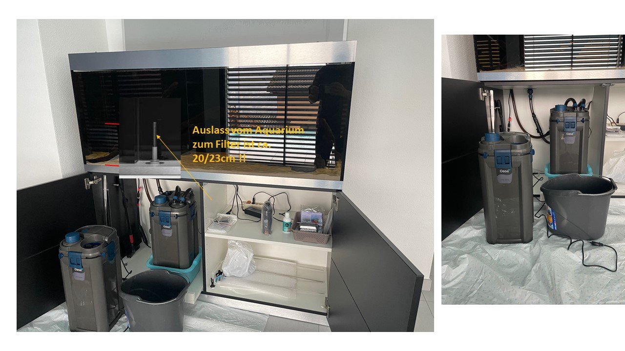 Filterauslass ins Aquarium ist mit dem Oase Zubehör ins Aquarium.