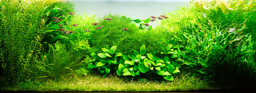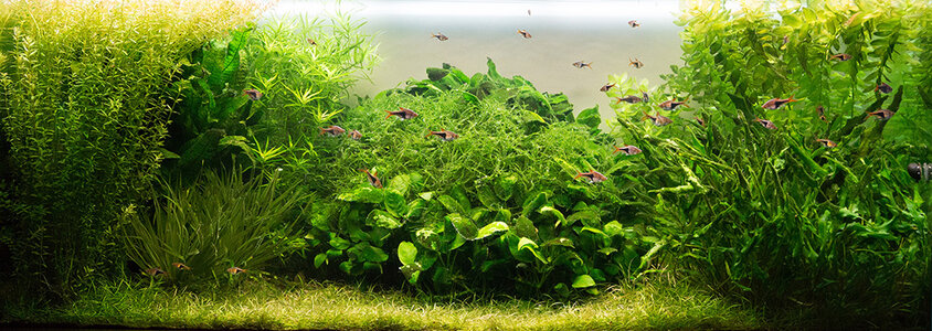Algenbefallene Pflanzenblätter wurden entfernt, Pflanzen teilweise bis kurz über den Bodengrund
