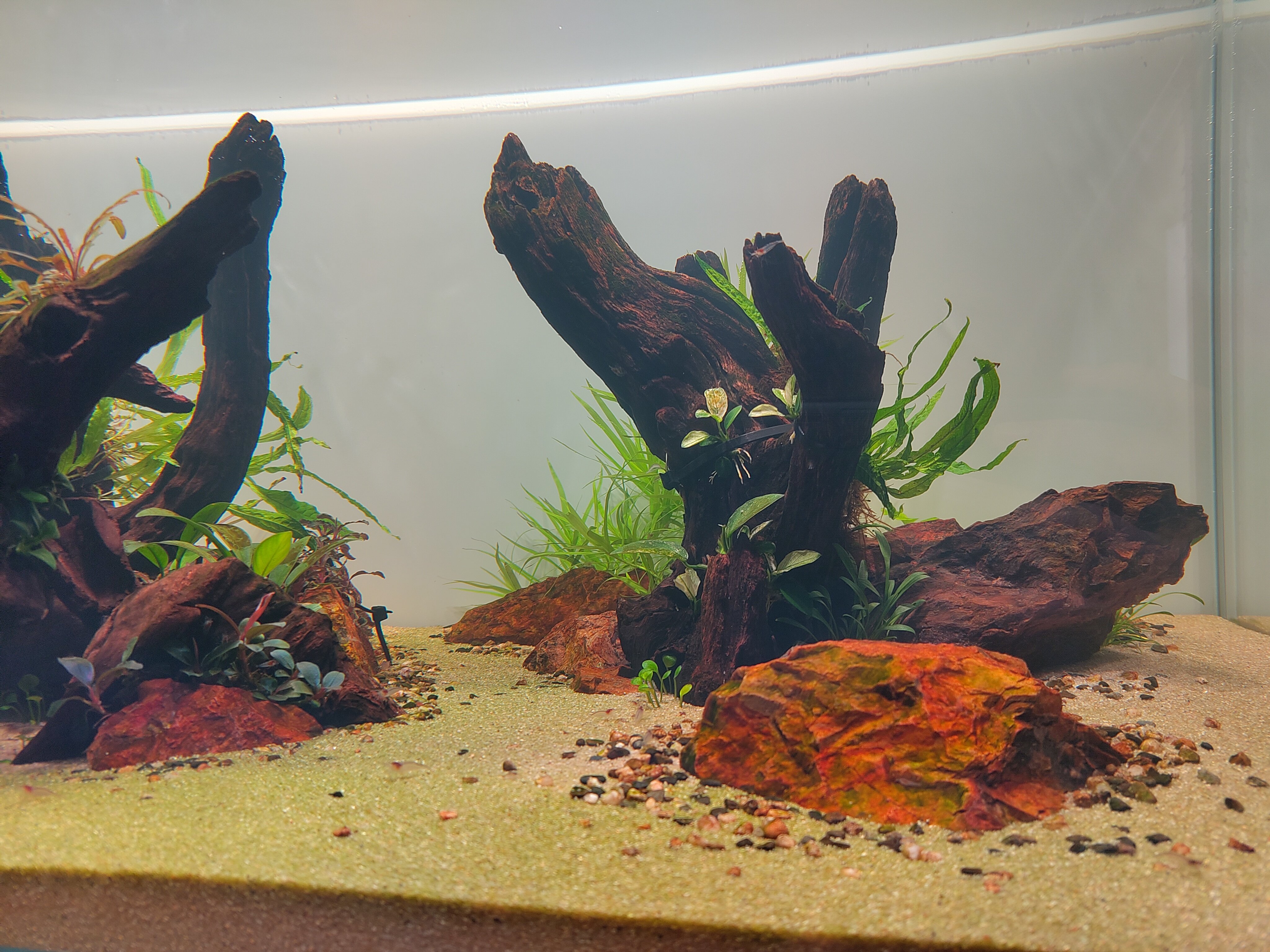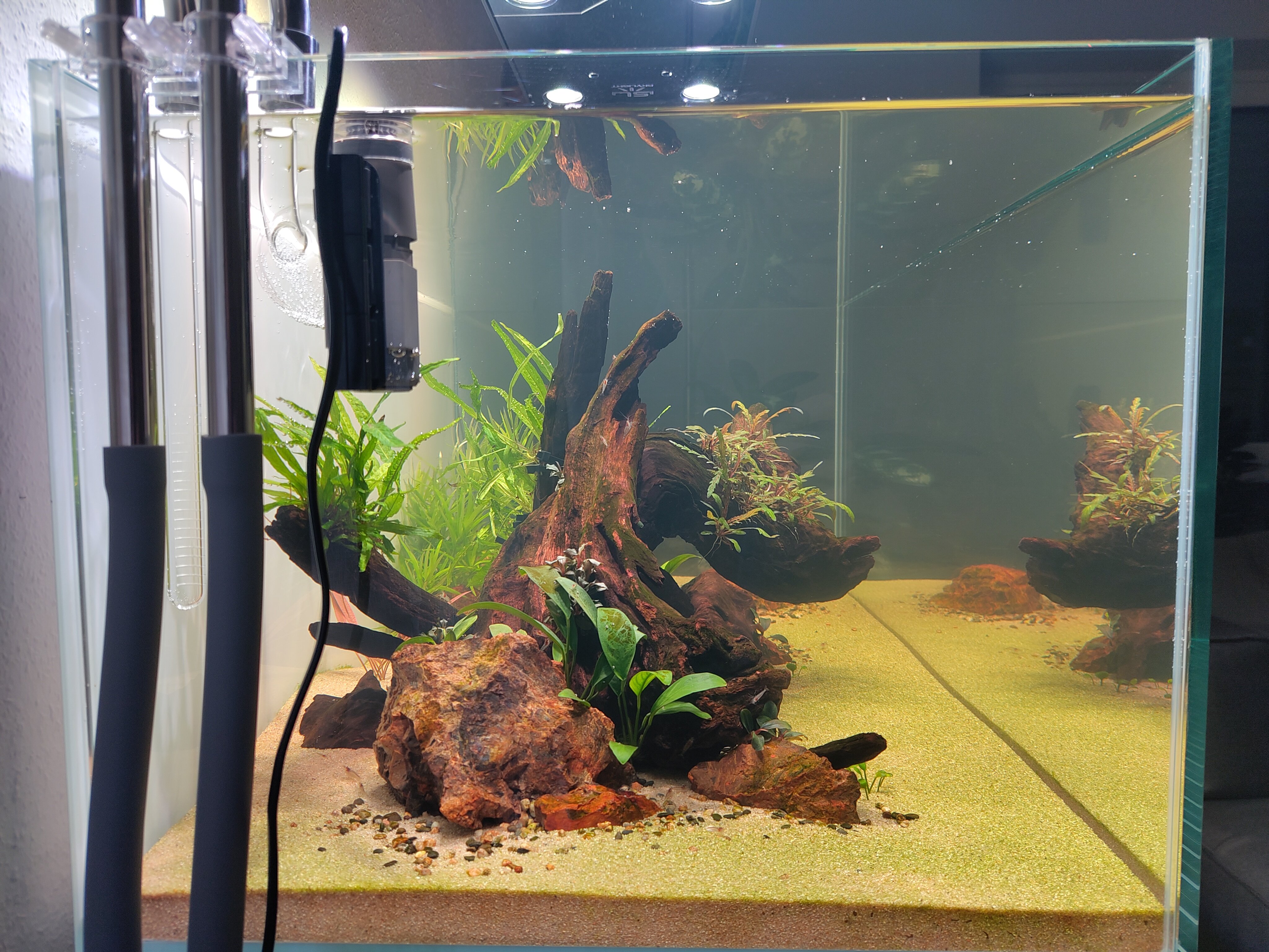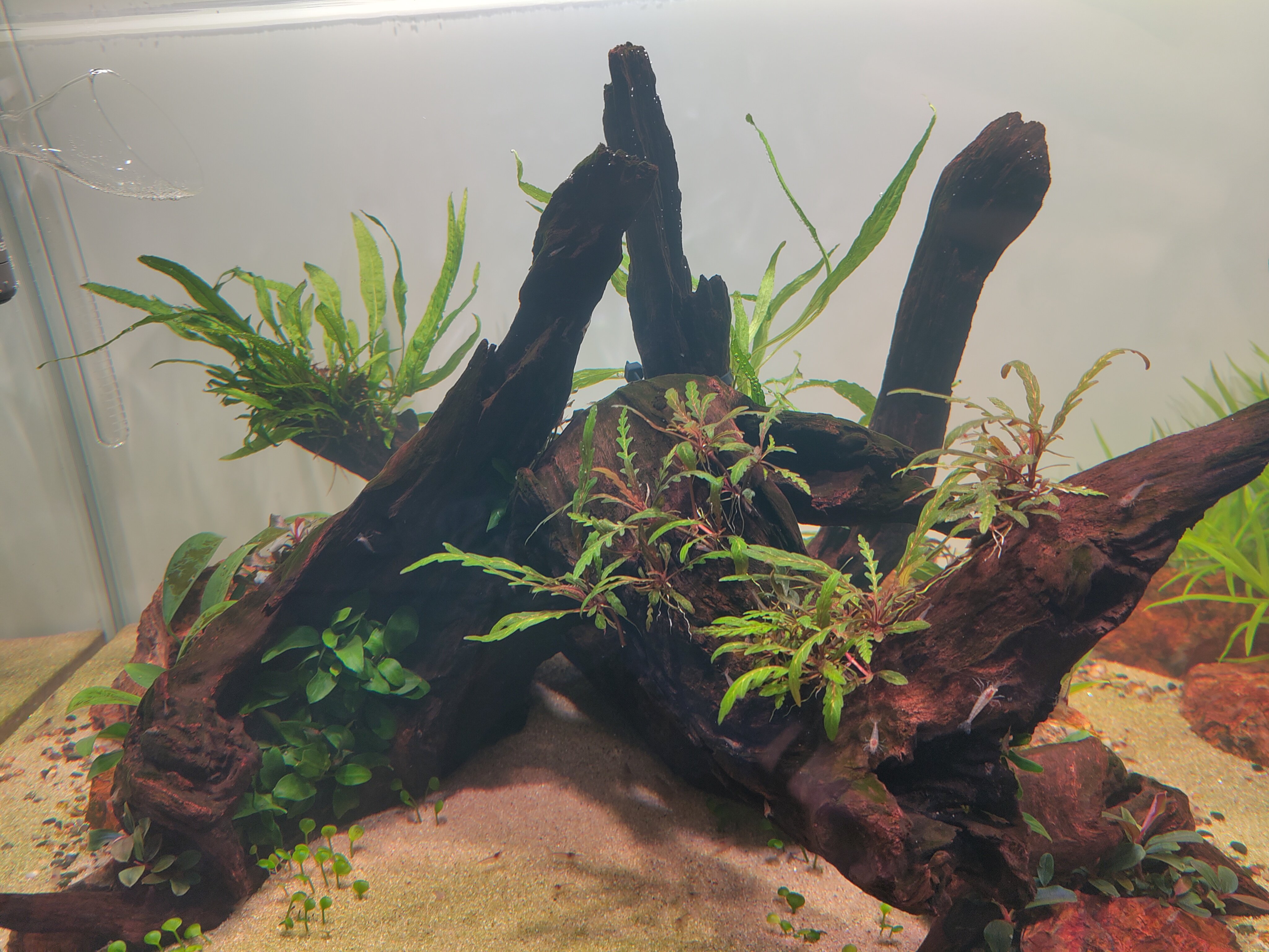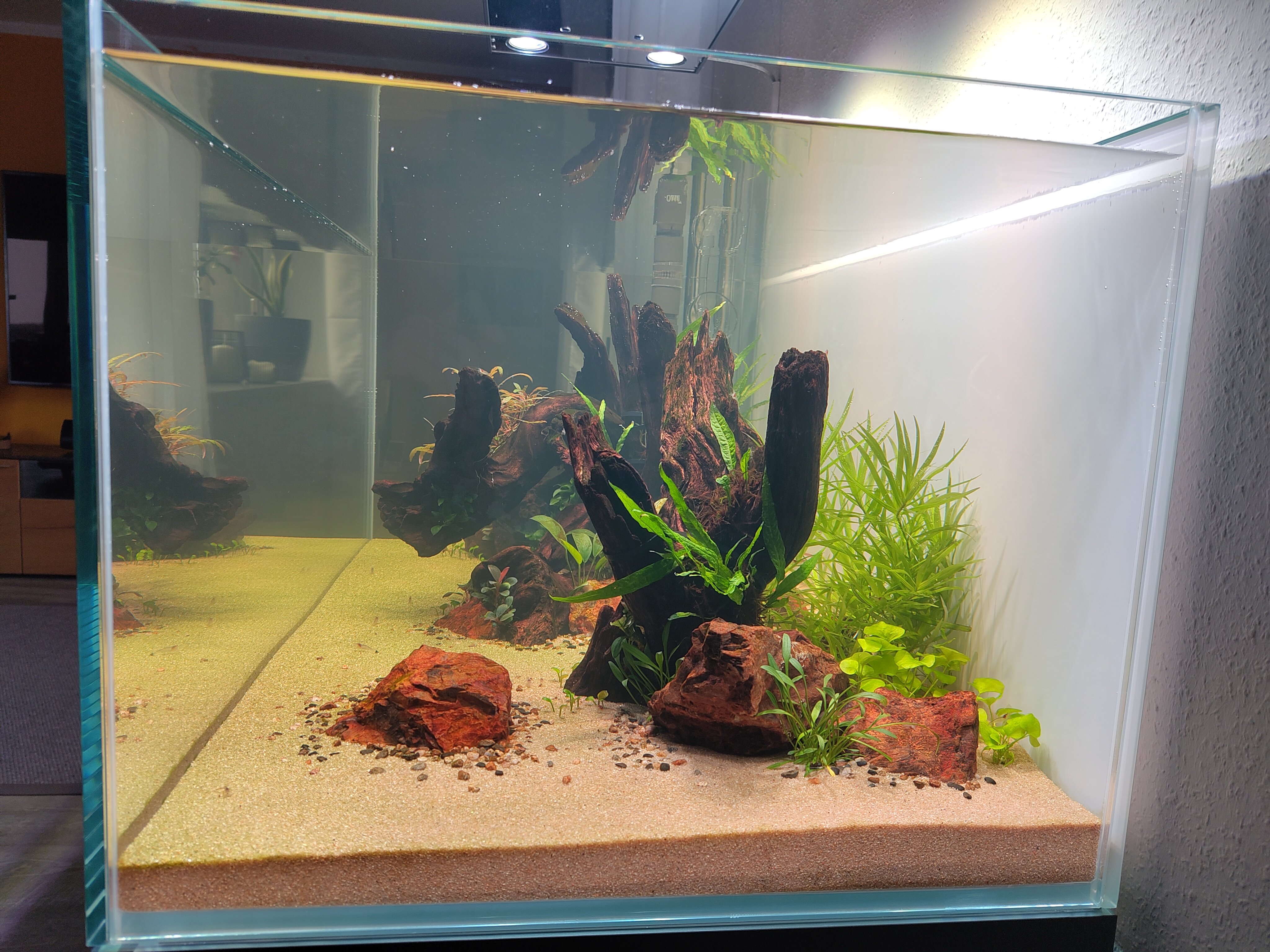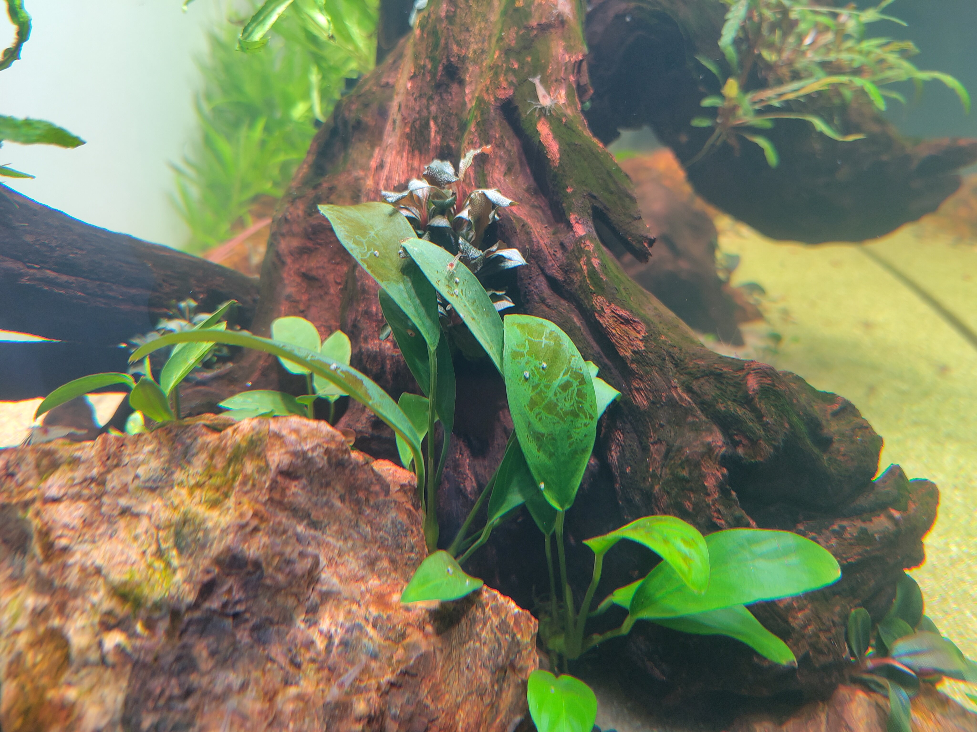 - ein microsorum narrow hat den microsorum trident ersetzt (hatte rein optische Gründe) und ein weiterer Topf Cryptocoryne Parva hat seinen Weg ins Becken gefunden.