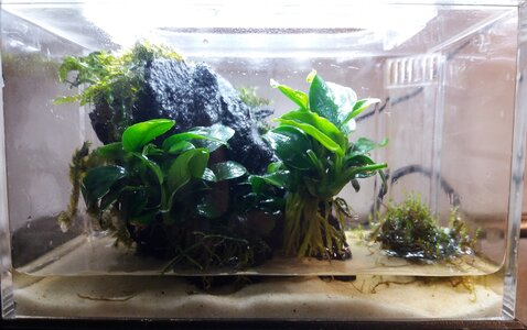 Da ich gebeten wurde die Aquarien mit einem Vergleichsgegenstand zu fotografieren, damit man sich ein besseres Bild über die Größe oder eben Winzigkeit machen kann, habe ich das mit einer Streichholzschachtel versucht.