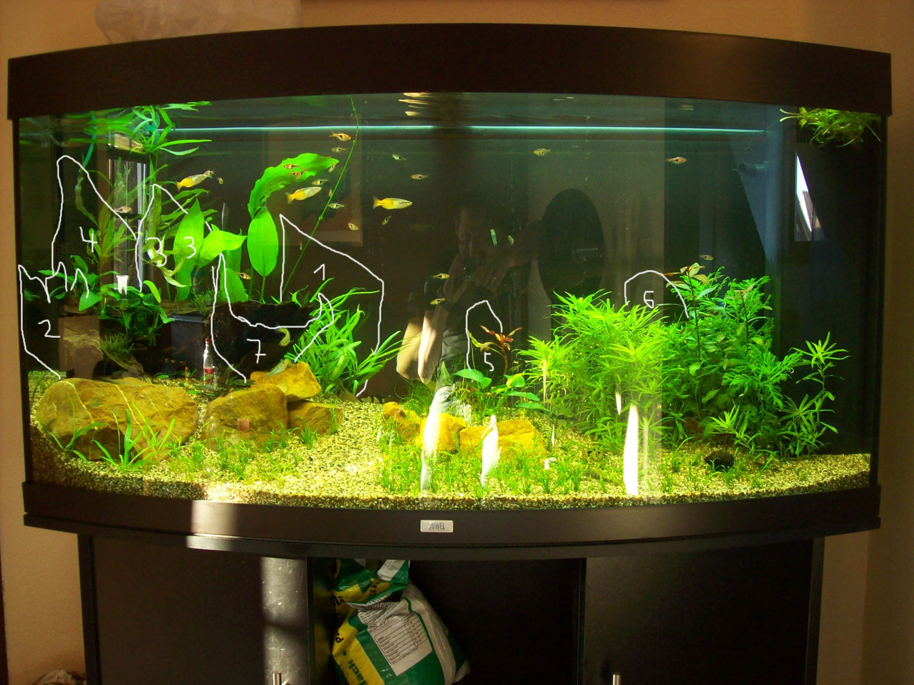 1x Rotala und den Busch neu pflanzen durch falschen Beischnitt sind einige eingegangen. Nummer 6 im Bild
