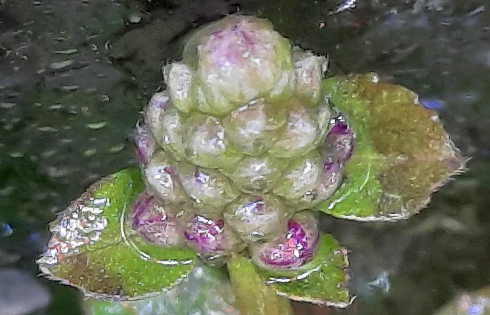 Carsten Logemann hat vor ca. 16 Jahren hier eine interessante Beobachtung mitgeteilt: Seine Pogostemon helferi bildeten Blühtriebe und Blüten, sogar submers. Er hielt sie im Kurztag und kühl.