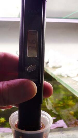 - Veränderungen der Wasserwerte nach Wasserwechsel: Als Beispiel: 80% WW mit reinem Osmosewasser, Zugabe 1g PMS/10L Wechselwasser. Leitwert danach im Becken 133, PH 6.2. Nach 24Std. : Leitwert 192, PH 6.4 am morgen, Abends 6.1. Nach 48Std. Leitwert weiter steigend, PH 6.6 morgens, 6.3 abends, nach ca 5 Tagen PH an 7.0 Grenze morgens, 6.7 Abends. CO2 Düngung konstant, Nachts aus.
