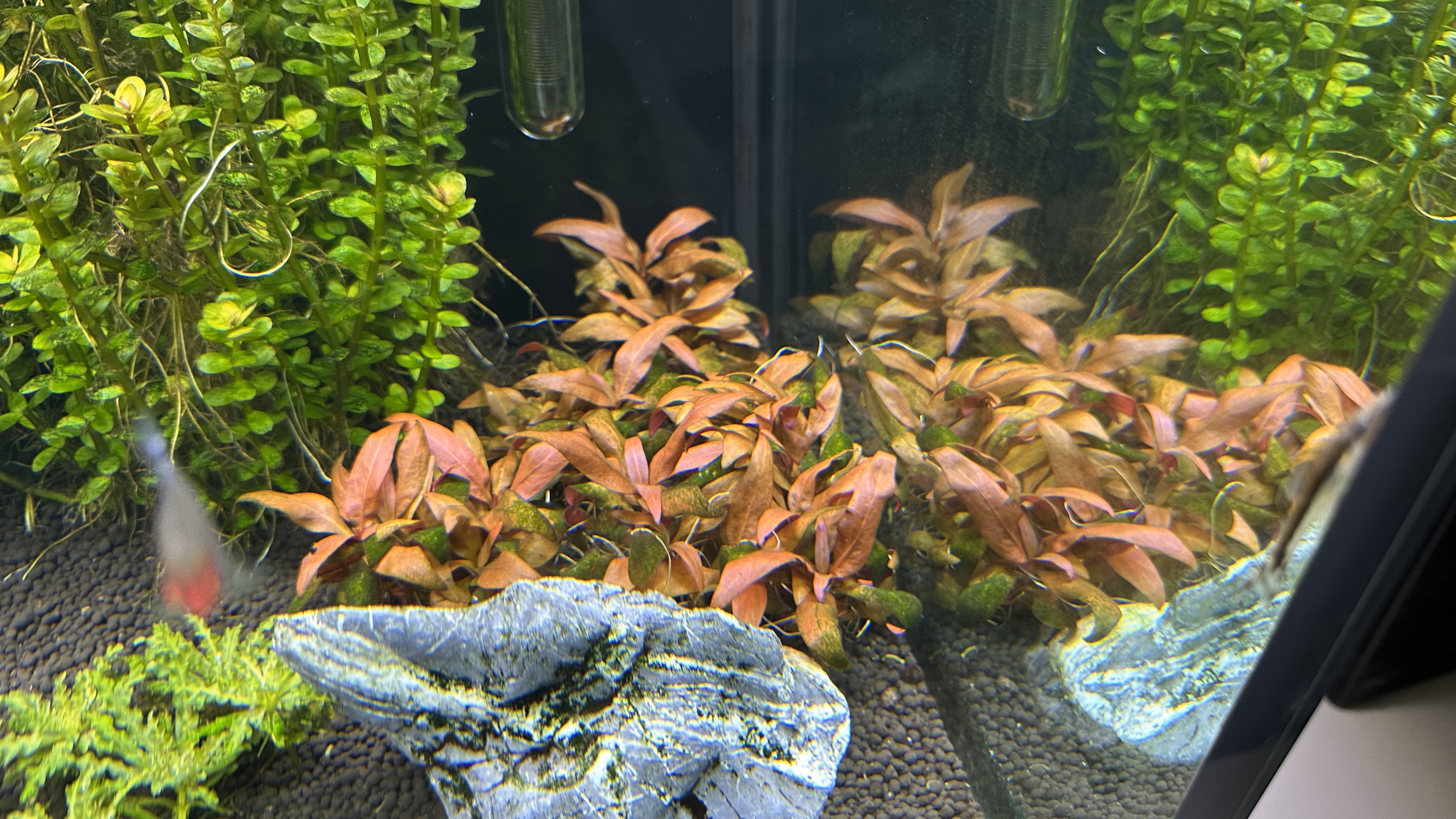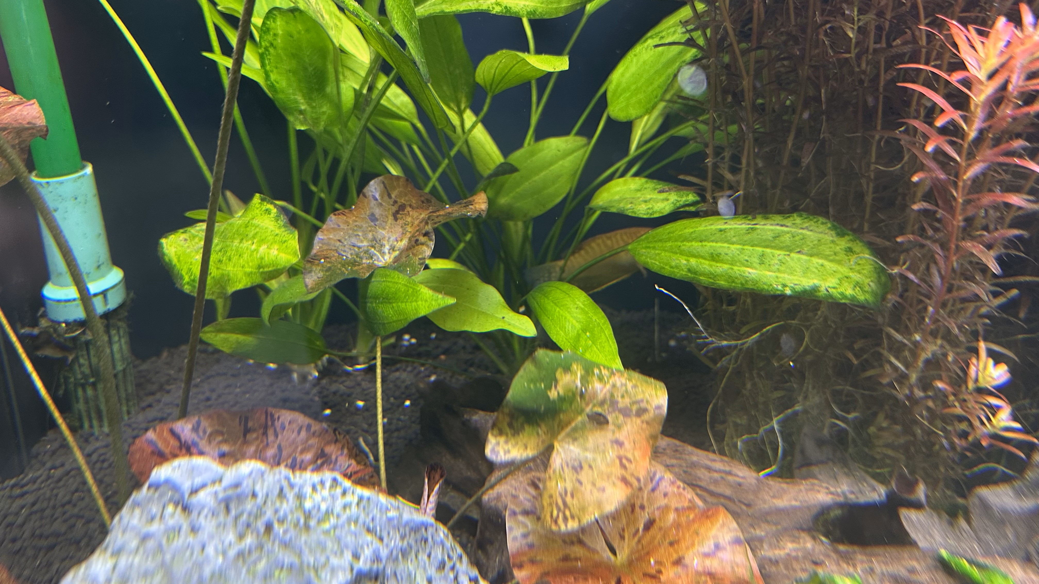 Nicht wundern, da Schwimmt eine Pflanze rum, die hat sich leider mal wieder von der Wurzel gelöst. Muss ich dann wieder ankleben oder dieses mal mit Angelschnur