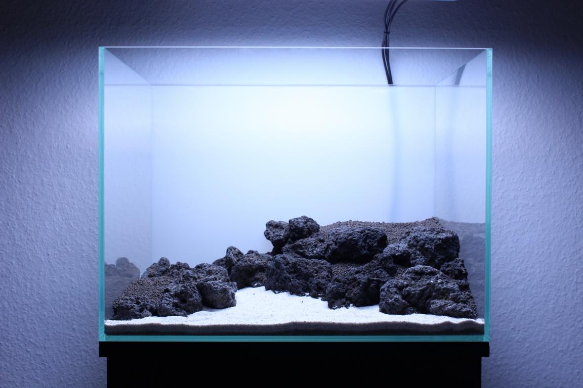 Gedüngt wird mit den ProScape Düngern. Ich habe vor, das Becken von Anfang im ADA Düngestil einzufahren. Also erste Woche nur Kalium, danach langsam mit dem Fe + Microelements kombinieren und den NPK nur nach Bedarf. Mal sehen wie es funktioniert, hochdüngen lässt sich später immer noch.