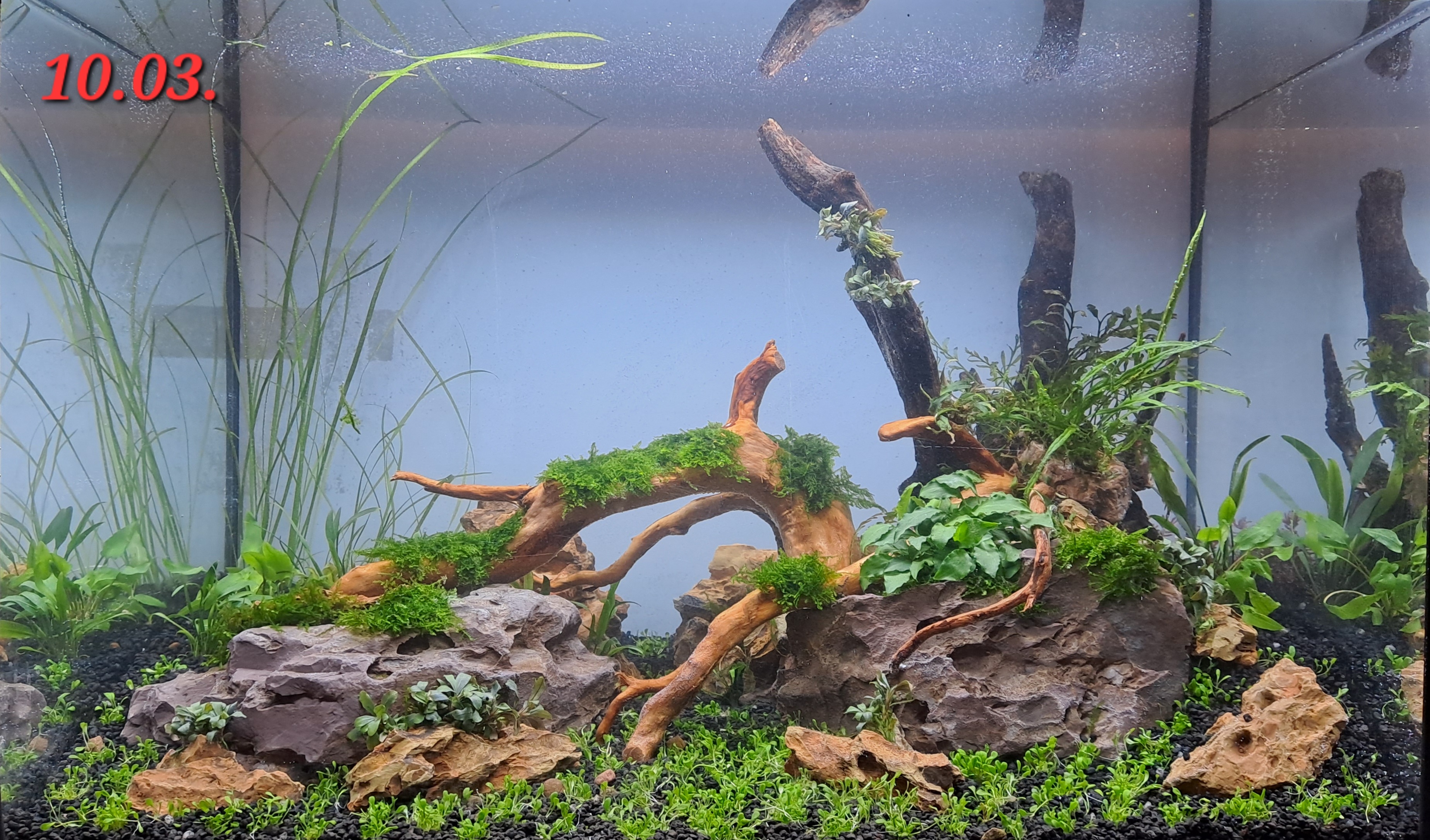 Hatte ich mit einer separaten Box bei meinem Becken auch überlegt, letztlich jedoch gleich im Becken aus 2 Gründen gespielt. Ich sehe hauptsächlich von der linken Seite ins Becken bis schräg von vorne, frontal schon selten. Und ich hatte den Unterbau vom Bodengrund solange nachjustiert, bis mir die Anordnung der Wurzeln und Steine getaugt hat. Also Foto machen, ne Nacht drüber schlafen, an den Wurzeln rumsägen und neu justieren, Steine anpassen, Foto machen, etc.