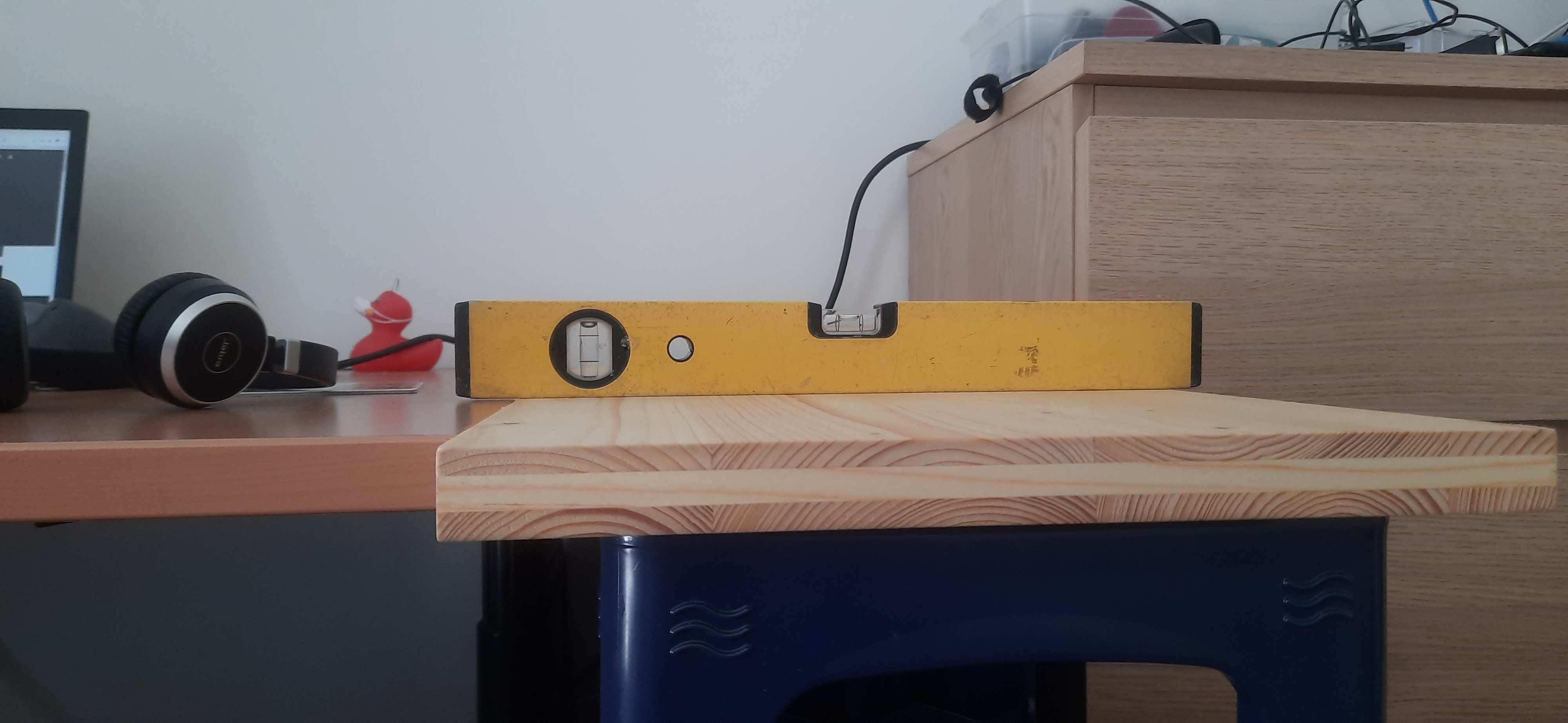 der "Unterschrank" ist soweit fertig. Ich habe mich vorhin draufgesetzt und er ist nicht zusammengebrochen. Die Tischplattenhöhe habe ich irgendwie gut erwischt :-)