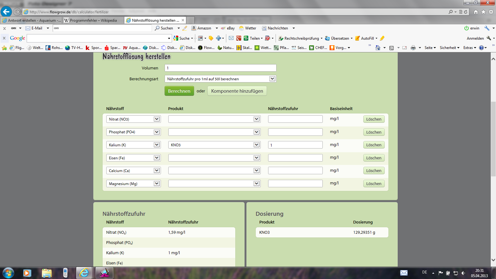 Jetzt will ich mir gerne 2 mal je eine Liter falsche Düngerherstellen!