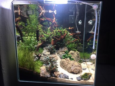 Was kann ich allenfalls dagegen tun? Die Beleuchtung dimmen oder Wasser "einfärben" (Erlenzapf) kommt für mich nicht wirklich in Frage. In meinem Scape steht die Bepflanzung im Vordergrund, jedoch möchte ich halt doch auch etwas "Fisch" im Becken zu sehen bekommen..Ich habe an einen weiteren "Beifisch" gedacht. Vielleicht nimmt Ihnen das die Scheu etwas? Was würdet Ihr mir empfehlen? Es sollte ein Fisch welcher logischerweise keine wirklich Scheu zeigt, trotz heller Beleuchtung..