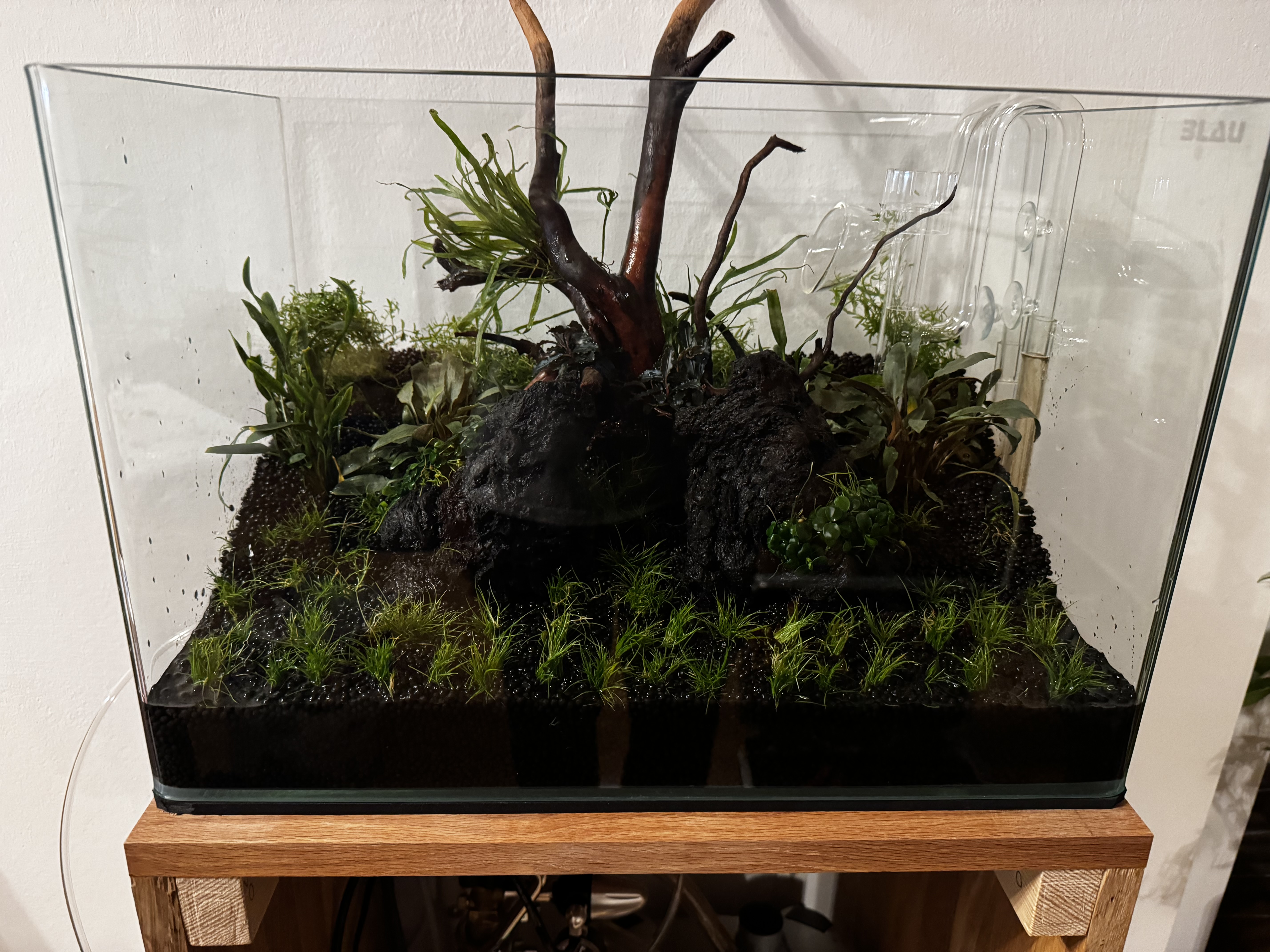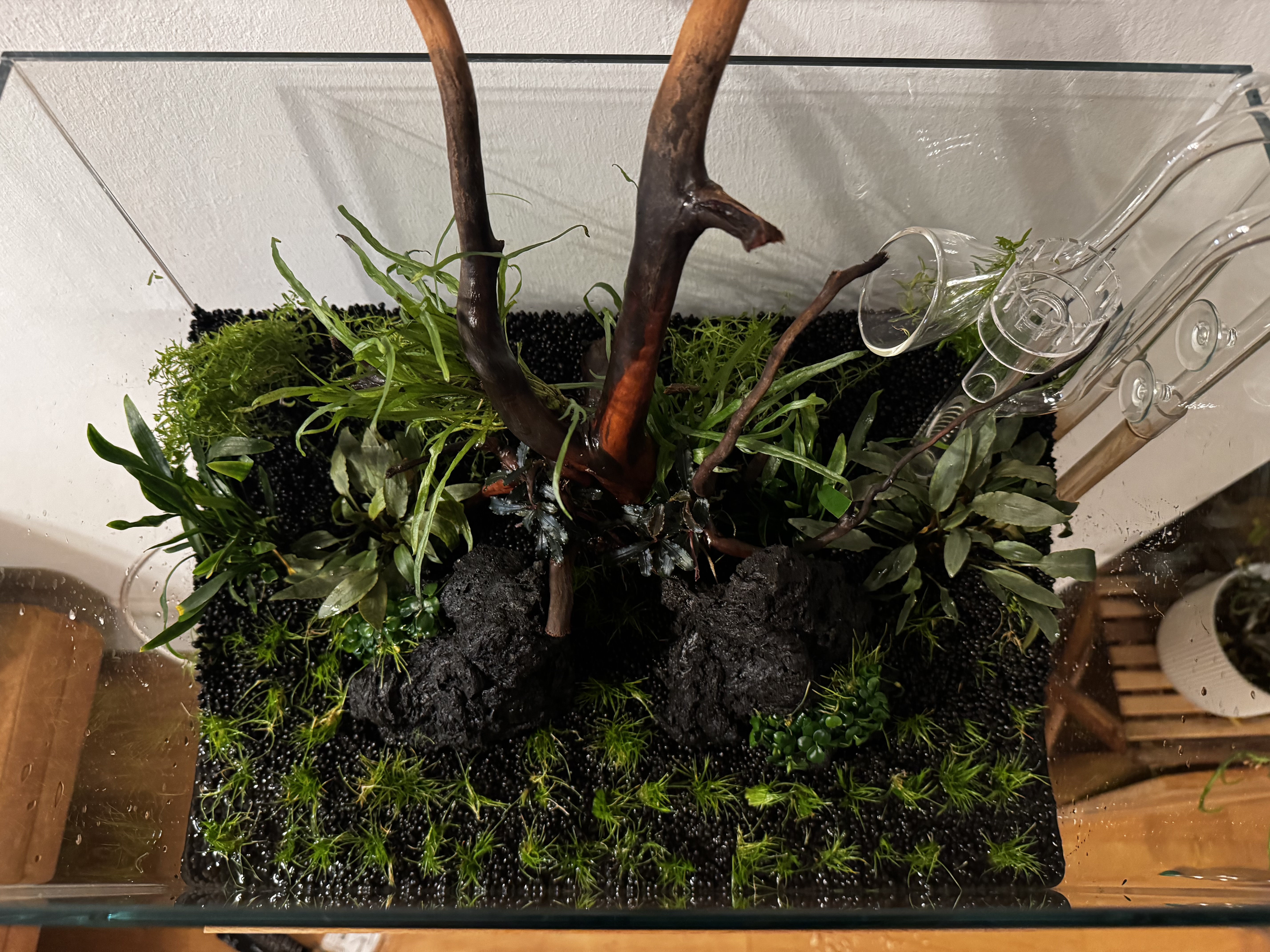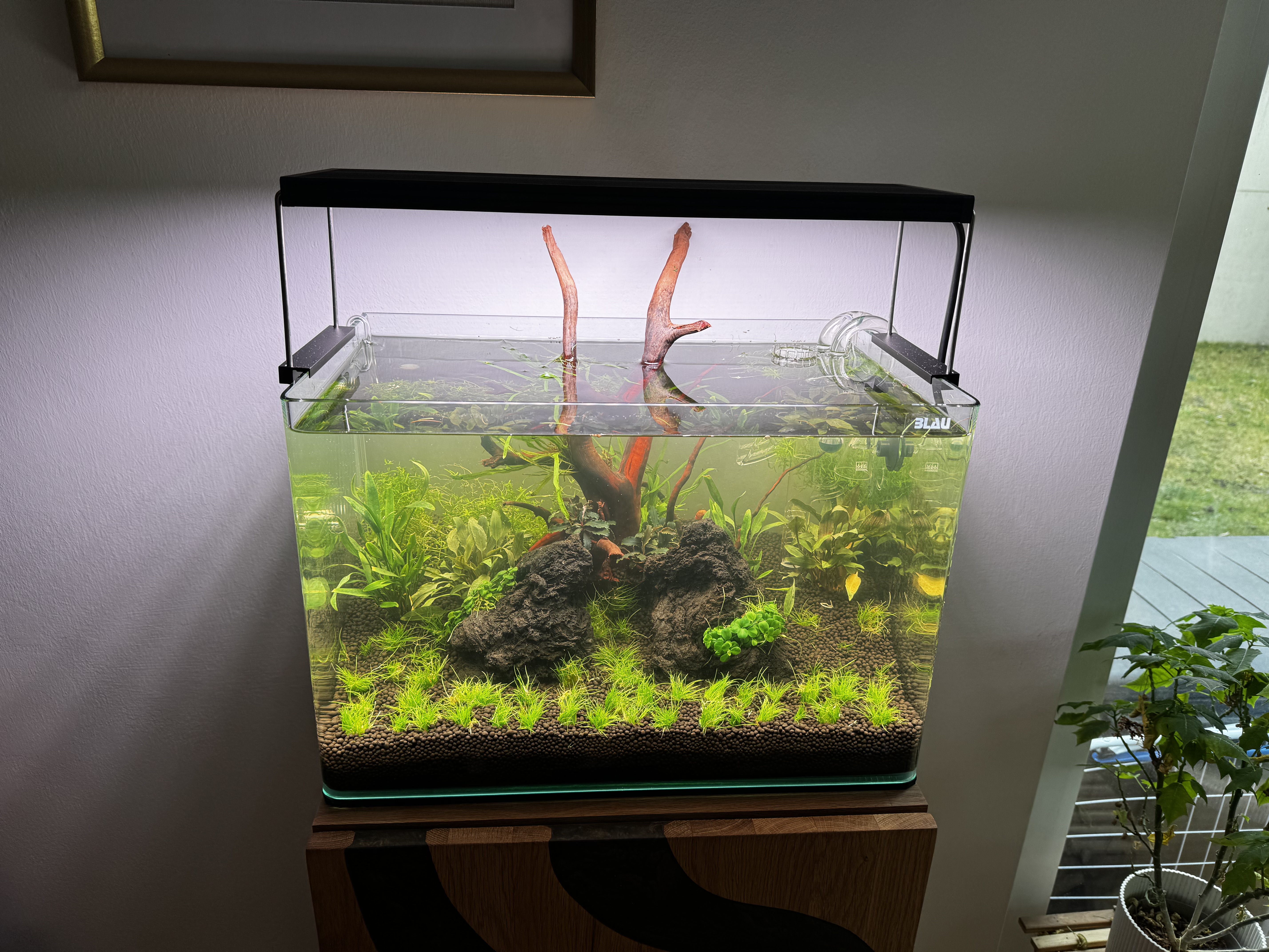 Vor ca zwei Wochen haben wir bepflanzt und fünf Posthornschnecken hinzugefügt.