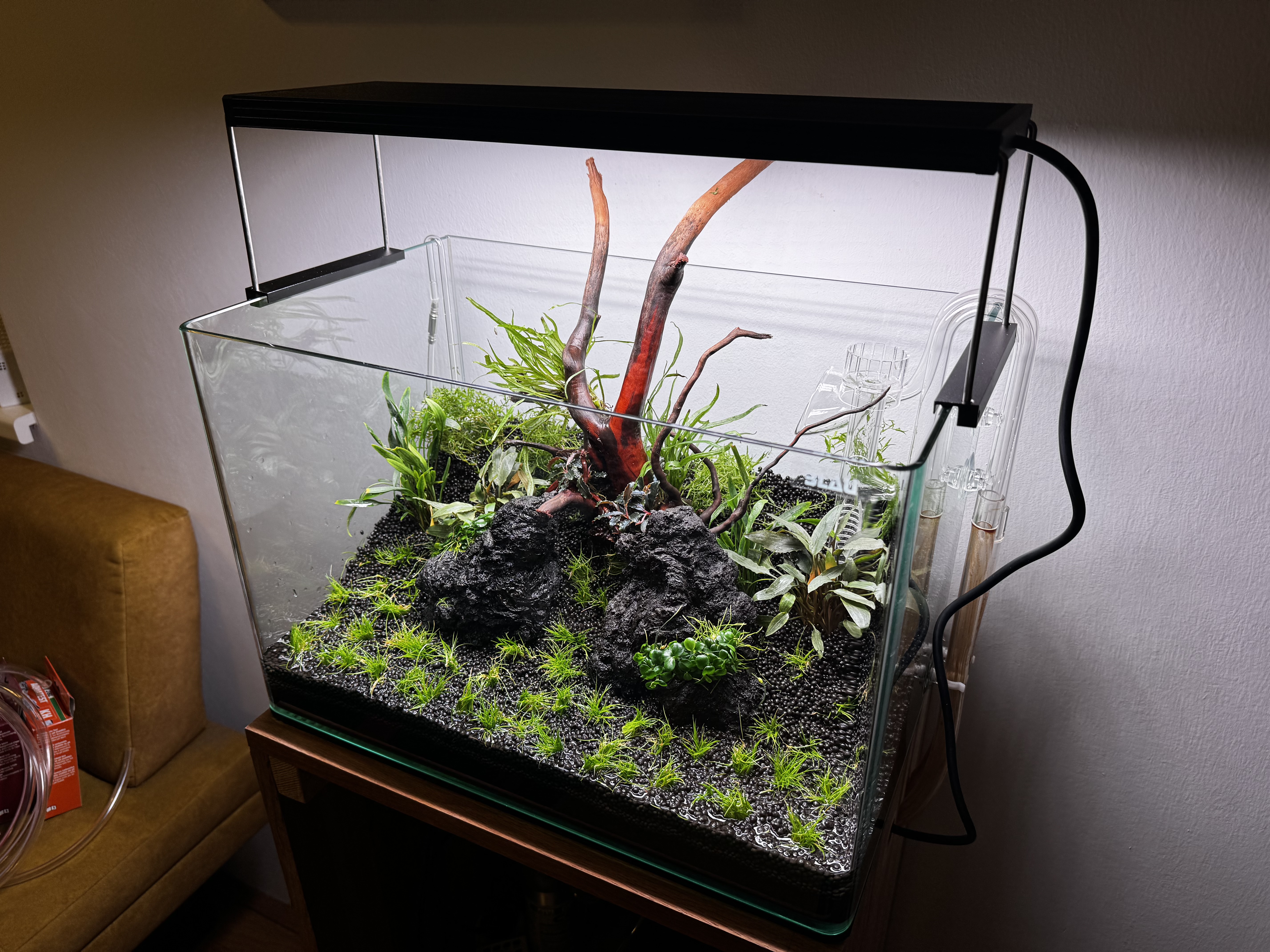 Beleuchtet wird aktuell noch 6 Stunden inkl je 30 Minuten Sonnenauf- und Untergang mit der Chihiros WRGB II Pro.