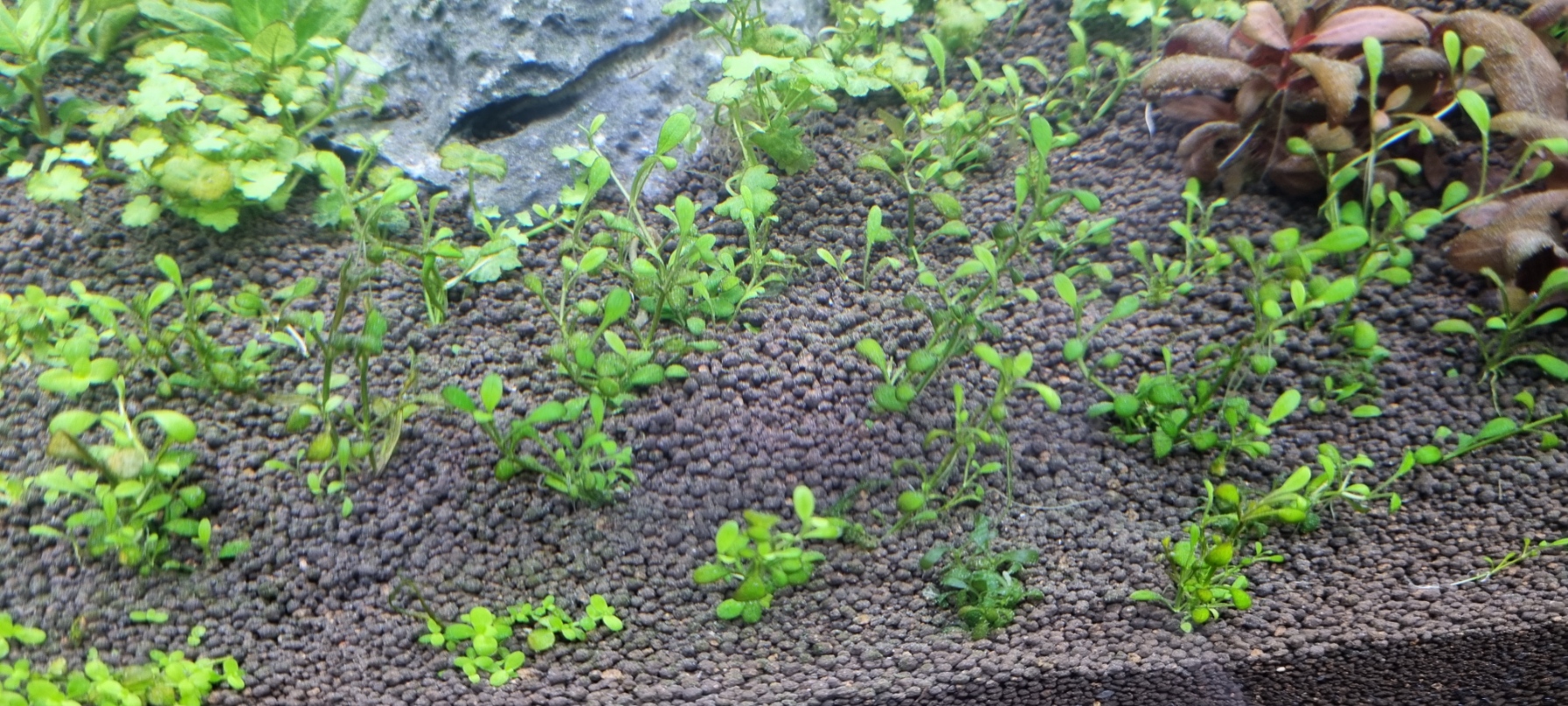 seit nun 2 Wochen läuft mein kleiner Becken und das größere seit einer Woche. Habe beide Becken komplett neu eingerichtet, verwendet habe bei beiden Becken den gleichen Bodenaufbau, unten Lava, dann Schicht ADA Power Sand Advance, anschließend GlasGarten Environment Aquarium Soil und kleine Schicht Poweder oben drauf. An beiden Becken fahre ich mit Co2 von 25-30 mg/l ( 20 Flüssigkeit ist gelb) Kleiner Becken Beleuchtung 60 Lumen und im großen aktuell 35 Lumen (wird auf 50 Lumen erweitert).