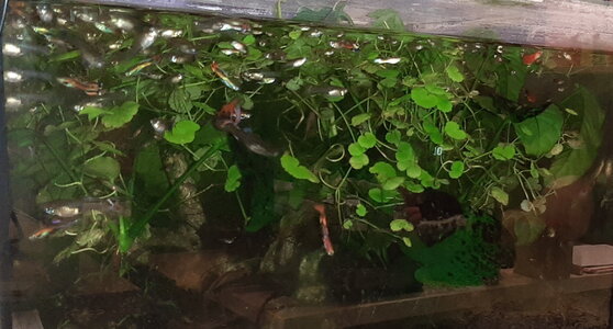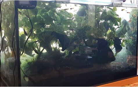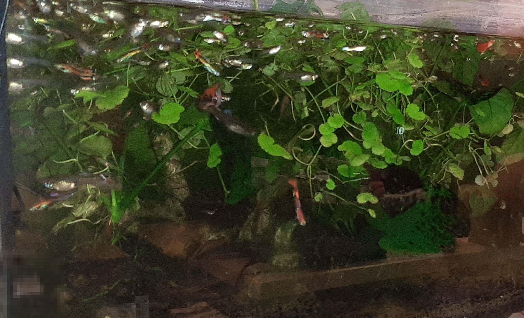 Nach einigen Monaten einen Kurzbericht vom techniklosen Aquarium. Ich war wieder mal 3 Wochen außerhalb und habe heute schnell das Aquarium sauber gemacht. Es wimmelt im Becken von Leben - tierischem wie pflanzlichen. Durch die Reinigungsarbeiten ist das Wasser noch etwas trübe, aber ein Gesamteindruck nach 1 3/4 Jahr vermitteln die Fotos wohl doch.