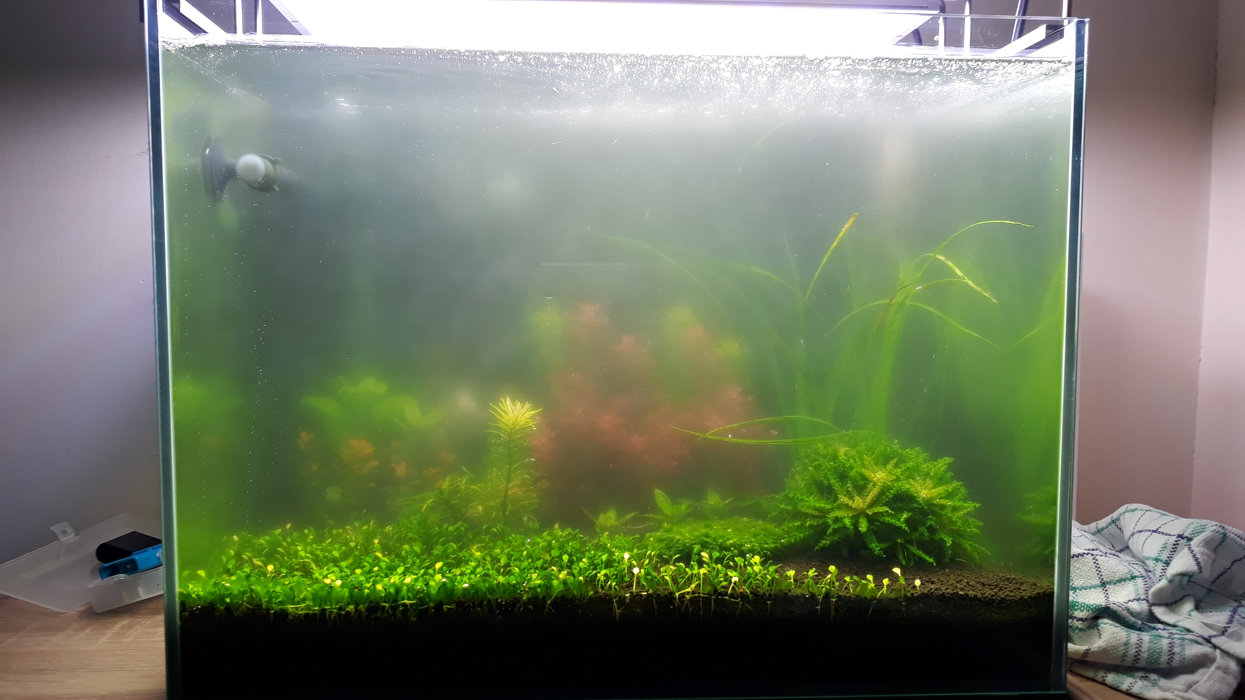 Habe wie gesagt im anderen Post schon so einiges probiert, es wird nicht besser. Mich interessiert in erster Linie was das für braune Würstchen sind und ob die Trübung an der Düngung liegt. Kann auch zuviel Licht eine Algenblüte auslösen?