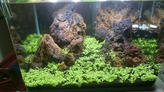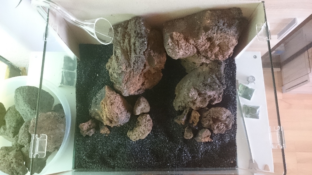 Layout soll ein Iwagumi mit Lavasteinen werden, habe davon noch jede Menge da. Werde aber vielleicht noch 2-3 größere besorgen als Mainstones. Leider hat hier kein Zooladen welche, nur solche mit Loch, das sieht aber doof aus. Als Bepflanzung habe ich mir HCC als Bodendecker und Hauptpflanze, als Akzent Pogostemon helferi und als Hintergrundpflanze Didiplis Diandra vorgestellt. Was sagt ihr dazu? Evtl noch ein bisschen Süßwassertang zwischen den Steinen, der wächst bei mir wie sonstewas.