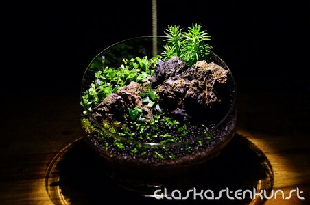 Sehr interessant... muss ich auch ausprobieren. Ich kann mir vorstellen, dass es Pflanzen gibt die sich für eine solche Haltung besser eignen, andere mit denen das nicht funktionieren wird. In deiner Schale wachsen ja vornehmlich flache, substratnahe Pflanzen. Vielleicht liege ich ja auch falsch, aber ich denke sowas funktioniert, da die Pflanzen nahe dem feuchten Substrat sind. Hochwachsende Pflanzen könnte ich mir vorstellen, gehen bei Sonnenlicht ohne zusätzliche Befeuchtung ein.