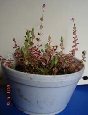 Die Blütenähre ist zwar sehr kurz geraten, aber ich meine, man kann erkennen, dass "Carsten's" wirklich zu Rotala rotundifolia gehört. Rundliche emerse Blätter, Ähre an der Sprossspitze (nicht z.B. einzelne Blüten oder Blütenstände in den Blattachseln), Kronblätter relativ groß.