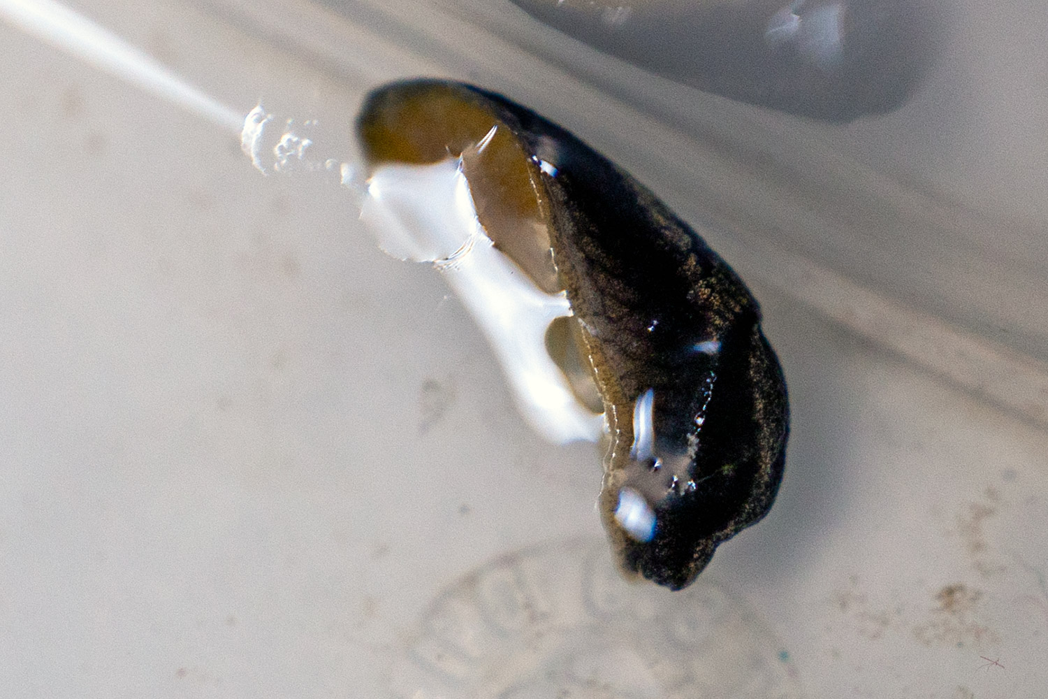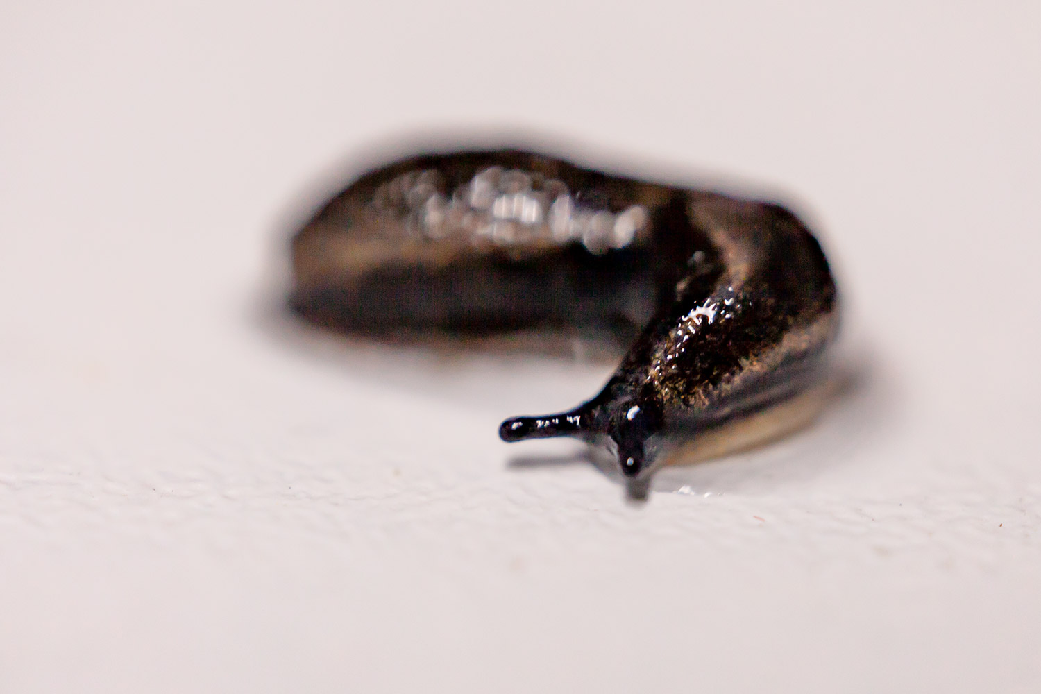 woher sie auch immer in die Wohnung gekommen ist, das dürfte speziell eine junge Kapuzinerschnecke = "Spanische" Wegschnecke (Arion vulgaris, irrtüml. Arion lusitanicus) sein. Weil Fuß gelblich und leichte Streifenzeichnung seitlich. Ebendie Nacktschnecke, die seit etwa den 80er Jahren invasiv auftritt. Die schlüpfen schon im Herbst aus den Eiern und überwintern als junge Schnecken.