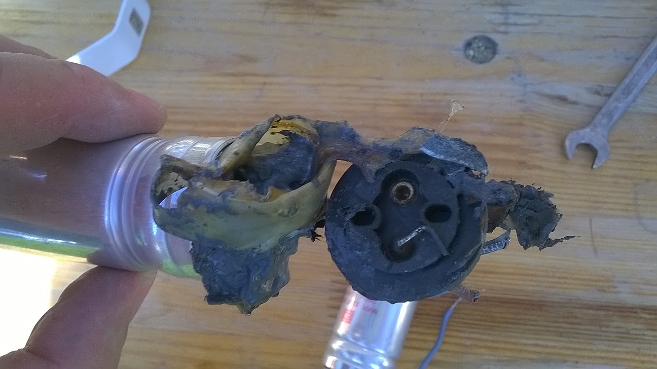 mir ist heute das was auf den Bildern zu sehen ist an einem meiner 3 70W HQI Strahler aufgefallen.