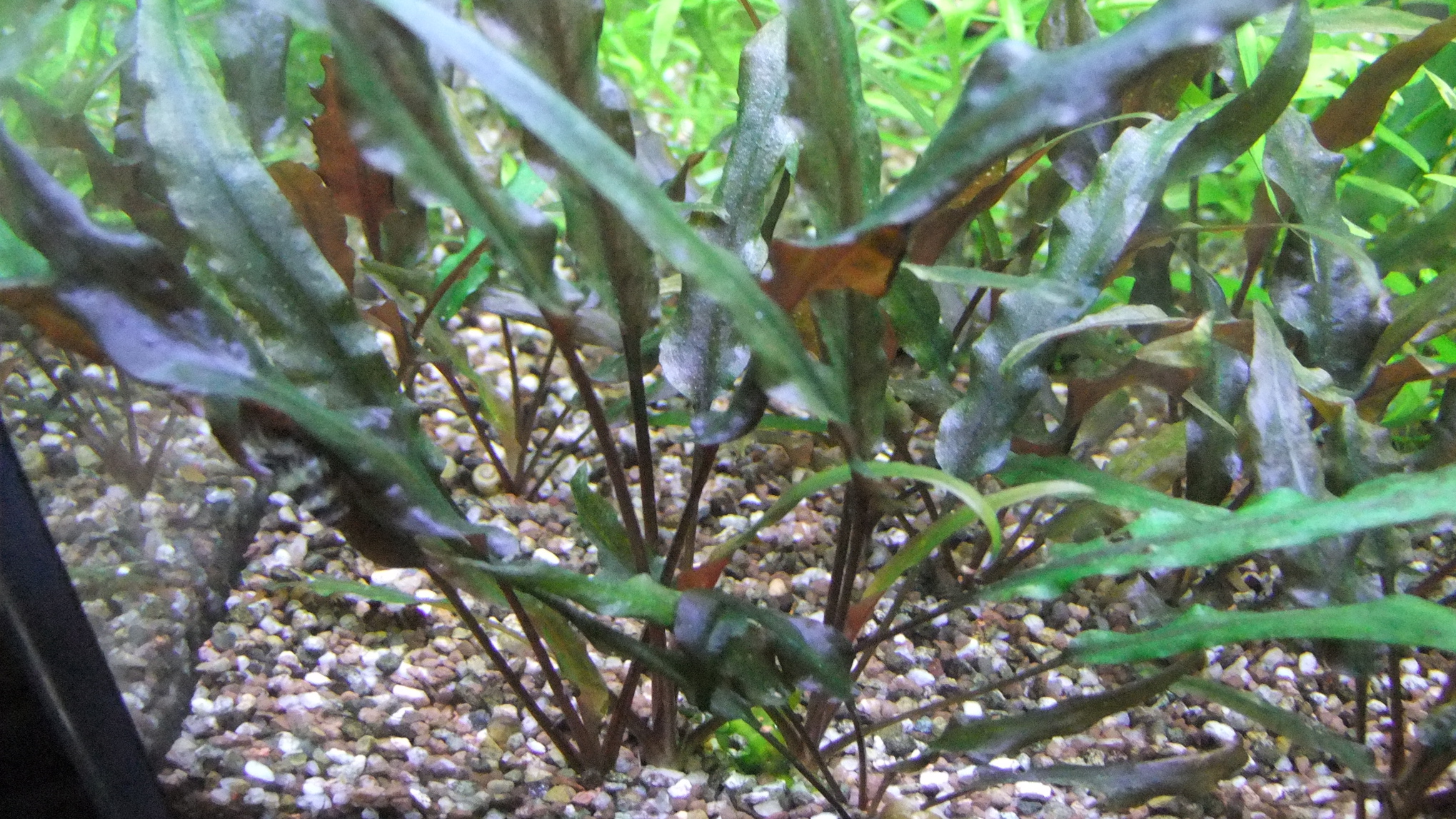 ich vermute, die Standard-Form von Cryptocoryne beckettii. Wegen der länglichen Blattform und dem grob welligen, etwas nach unten gebogenen Rand. Aber ohne Gewähr. Auf jeden Fall eine aus der Sri-Lanka-Artengruppe um beckettii, wendtii, undulata, walkeri.