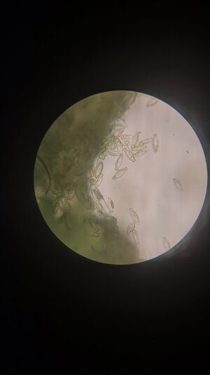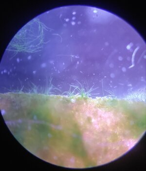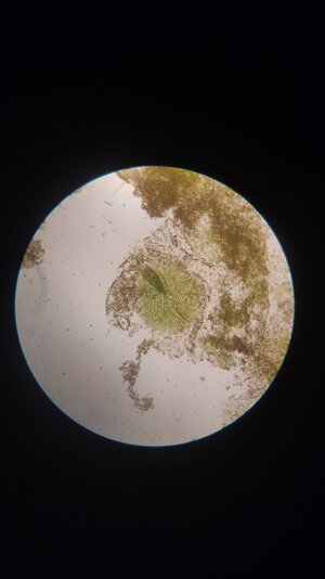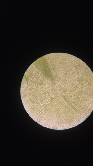 In der eingetrockneten Probe, 1000-facher Vergrößerung mit Immersionsöl, stellen sich als Kreuz-Kieselalgen Stauroneis anceps heraus.