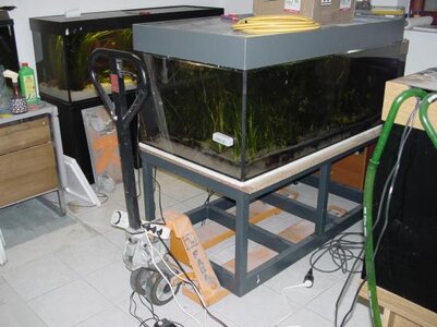 Und das wird nicht auf einem m² stehen, sondern auf weniger. Und da weiß ich noch nicht mal ob der Kies und die Steine reichen. ( Anstieg, evtl. zwei Steinhügel rechts und links) - dann großer Eheim-Filter, 2kg Kohlensäureflaschen, zwei Ausatzlampen oben aufs Becken...