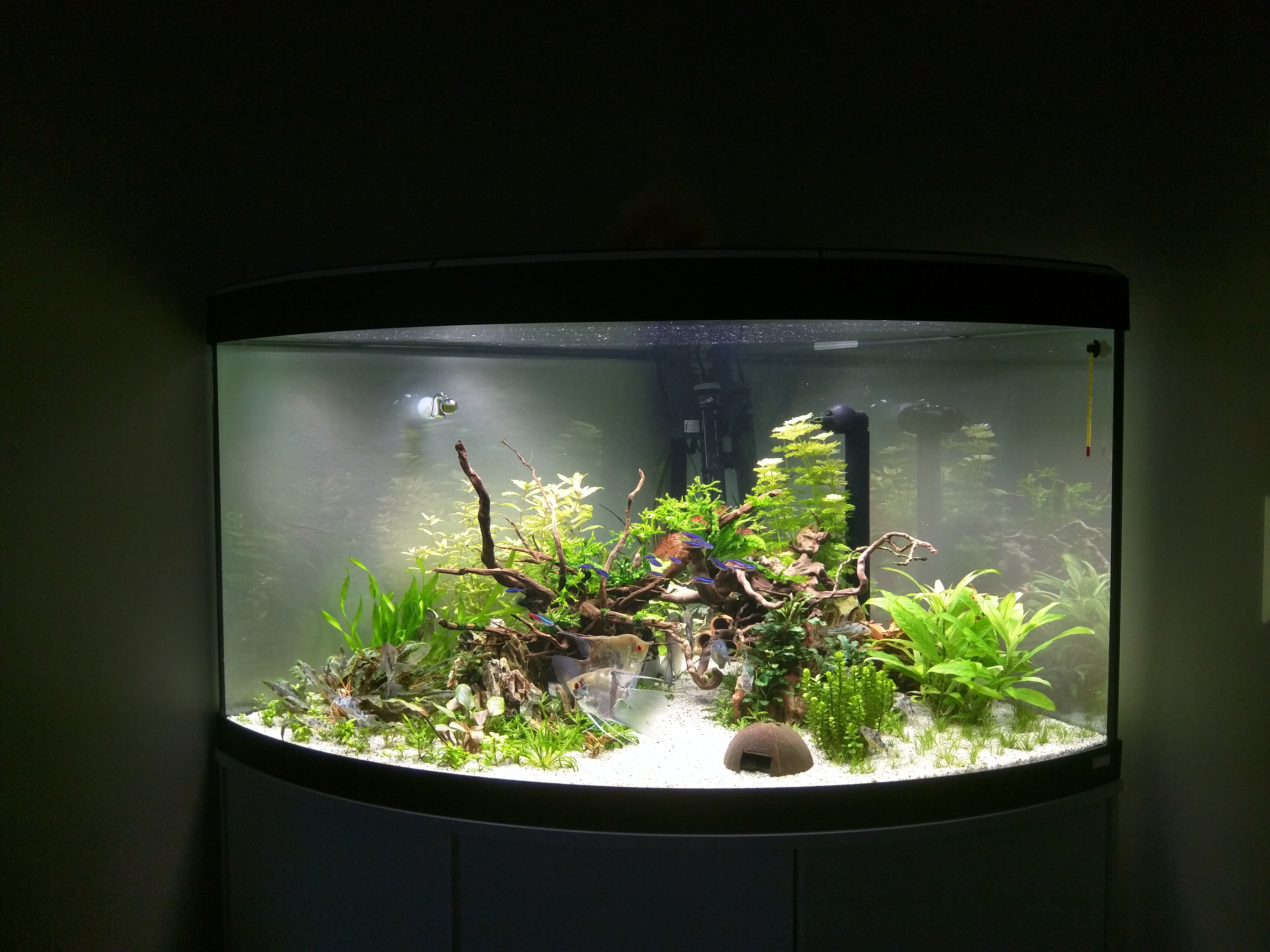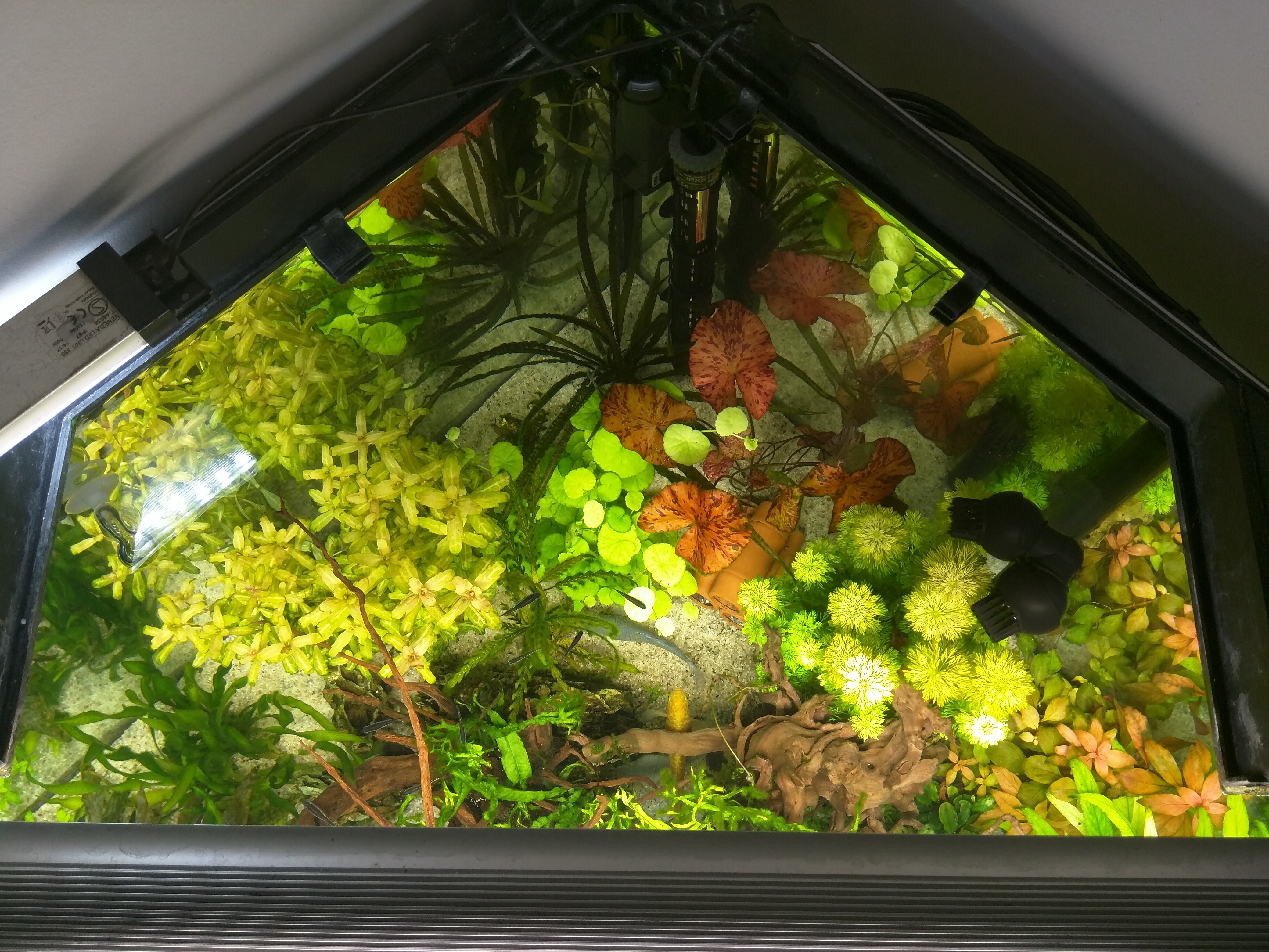Da ich in meinem Fluval Venezia 350 Becken seit längerer Zeit mit meinen Bodendeckern und Roten Pflanzen (viele dahin gegangen) zu kämpfen hatte kaufte ich mir mit der Zeit zu den Standard Leuchten von Fluval (1280+2880 Lm) noch eine 24W und 44W JBL Nature.